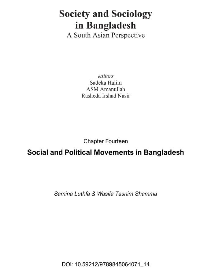 Luthfa, Samina, AU, Shamma, Wasifa Tasnim, AU. Social and Political Movements in Bangladesh. Dhaka, Bangladesh. https://dx.doi.org/10.59212/9789845064071_14